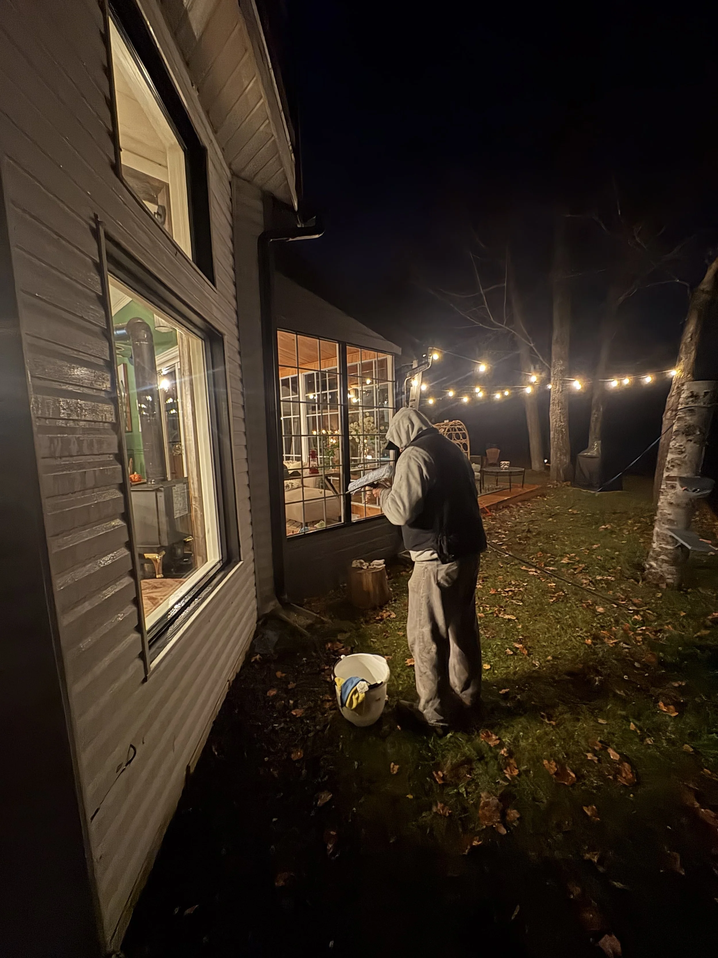 Nettoyage extérieur complet : ramassage des débris, balayage des surfaces et préparation générale du terrain.